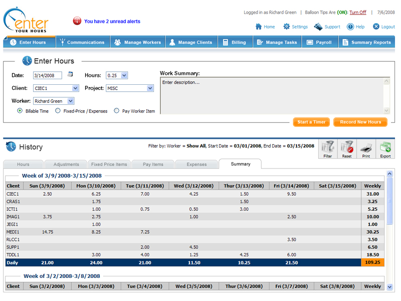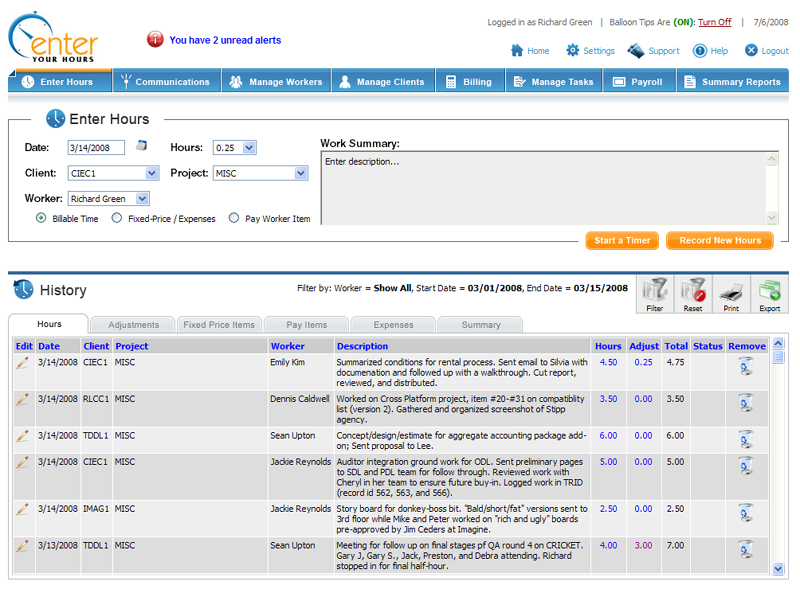 At the core of the EYH system are the records of all the work performed. Anyone performing work that will get billed to a client, or simply needs to be tracked for auditing purposes, will enter this information into EYH. As you can imagine, the process is incredibly simple.
